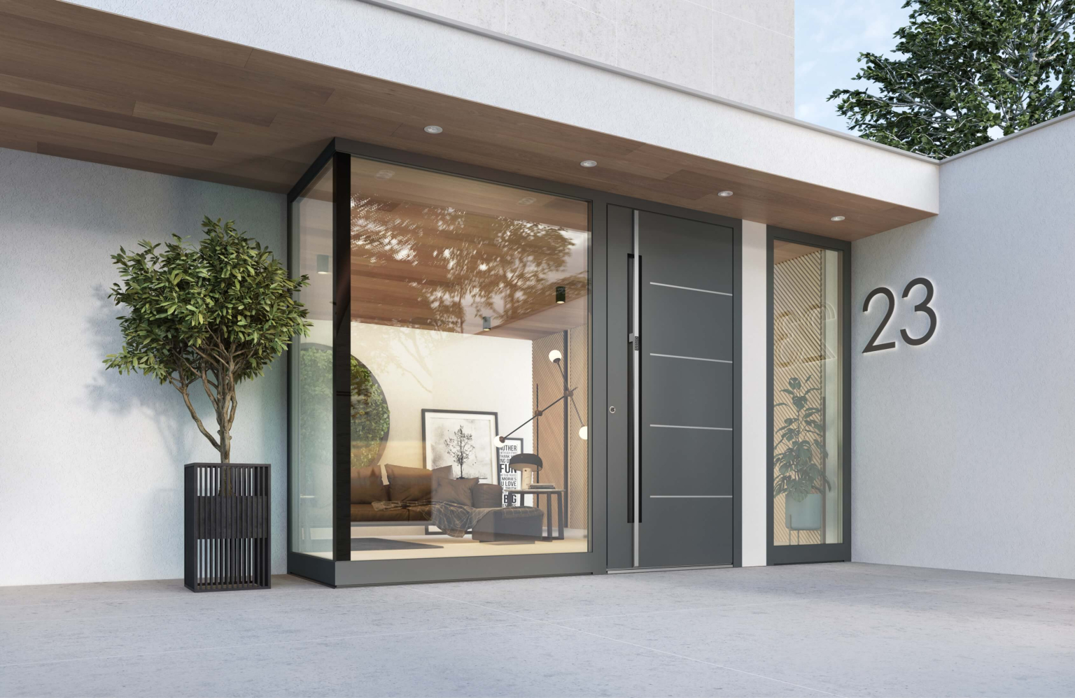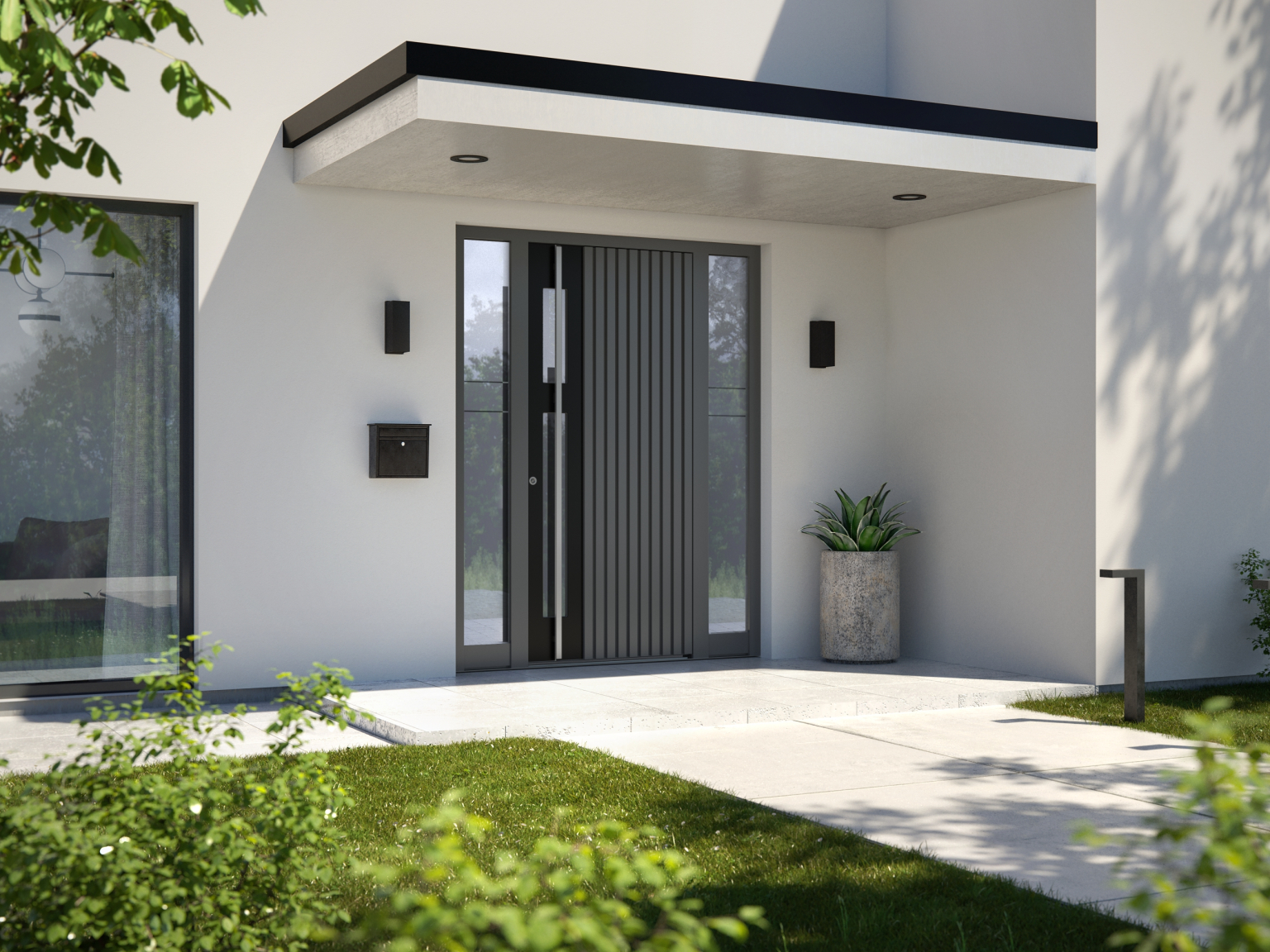 Carica una foto della tua facciata nel configuratore e modifica i colori, le forme e accessori per scegliere la giusta port per te.